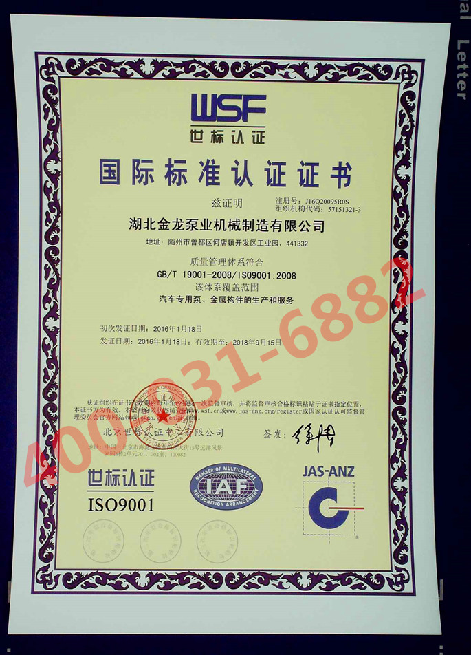 在公司員工的不懈努力下,經(jīng)過認(rèn)證公司專家的全面、嚴(yán)格、細(xì)致的指導(dǎo)和審核,確認(rèn)我公司質(zhì)量管理體系符合ISO9001:2008質(zhì)量體系標(biāo)準(zhǔn)的要求,并于2012年10月22日,向我公司正式頒發(fā)了ISO9001質(zhì)量管理體系認(rèn)證證書。